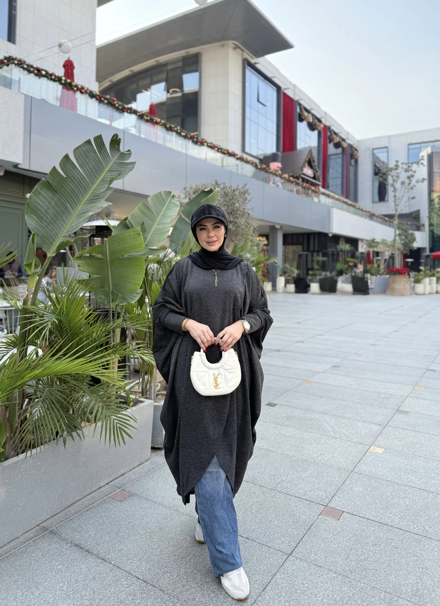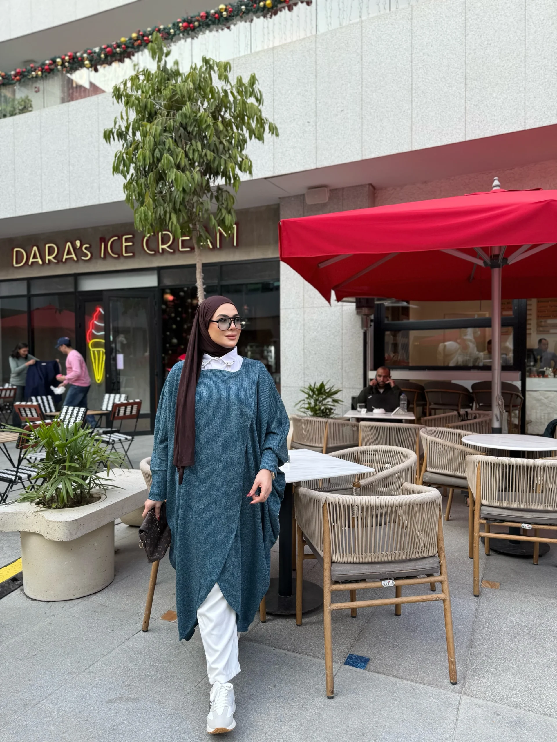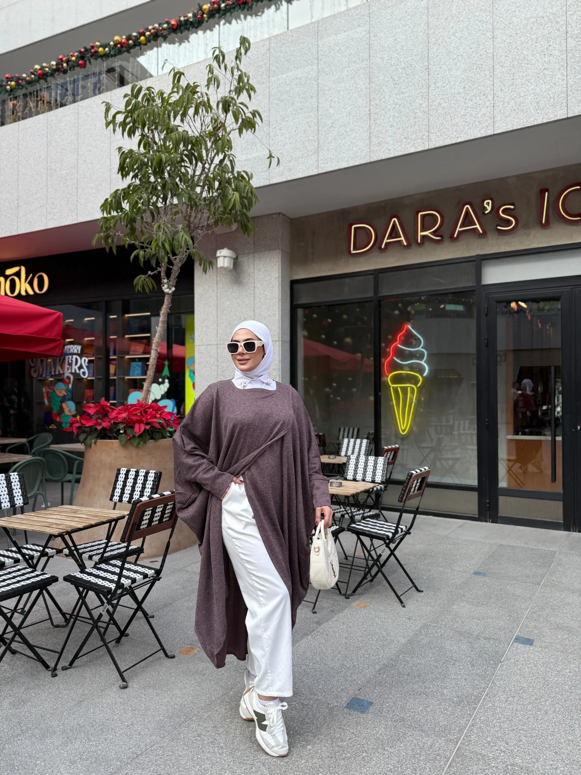 البونشو عملي جدًا، سهل ألبسه على أي حاجة ، وخامته مريحة في اللبس