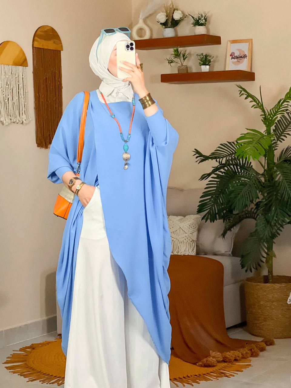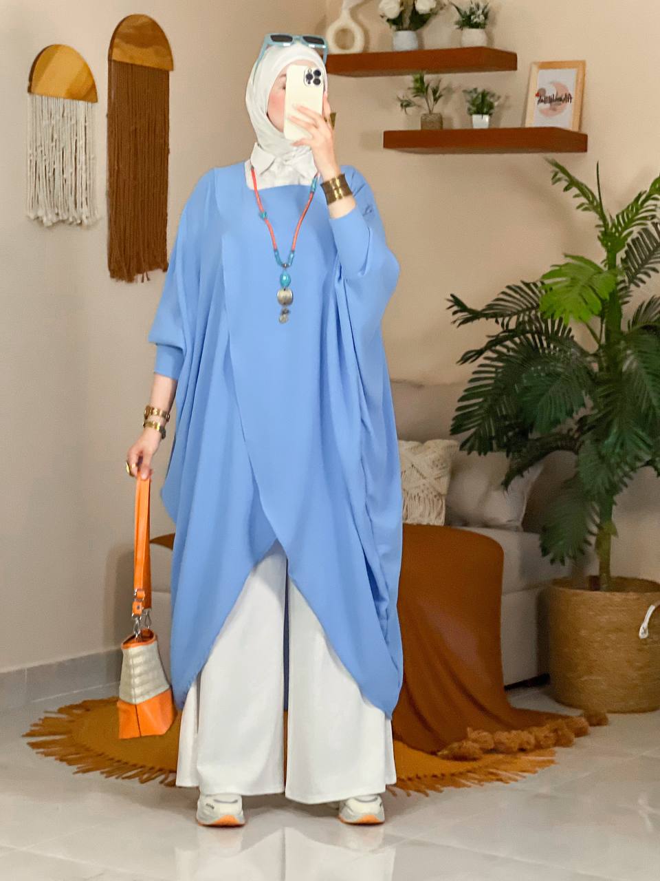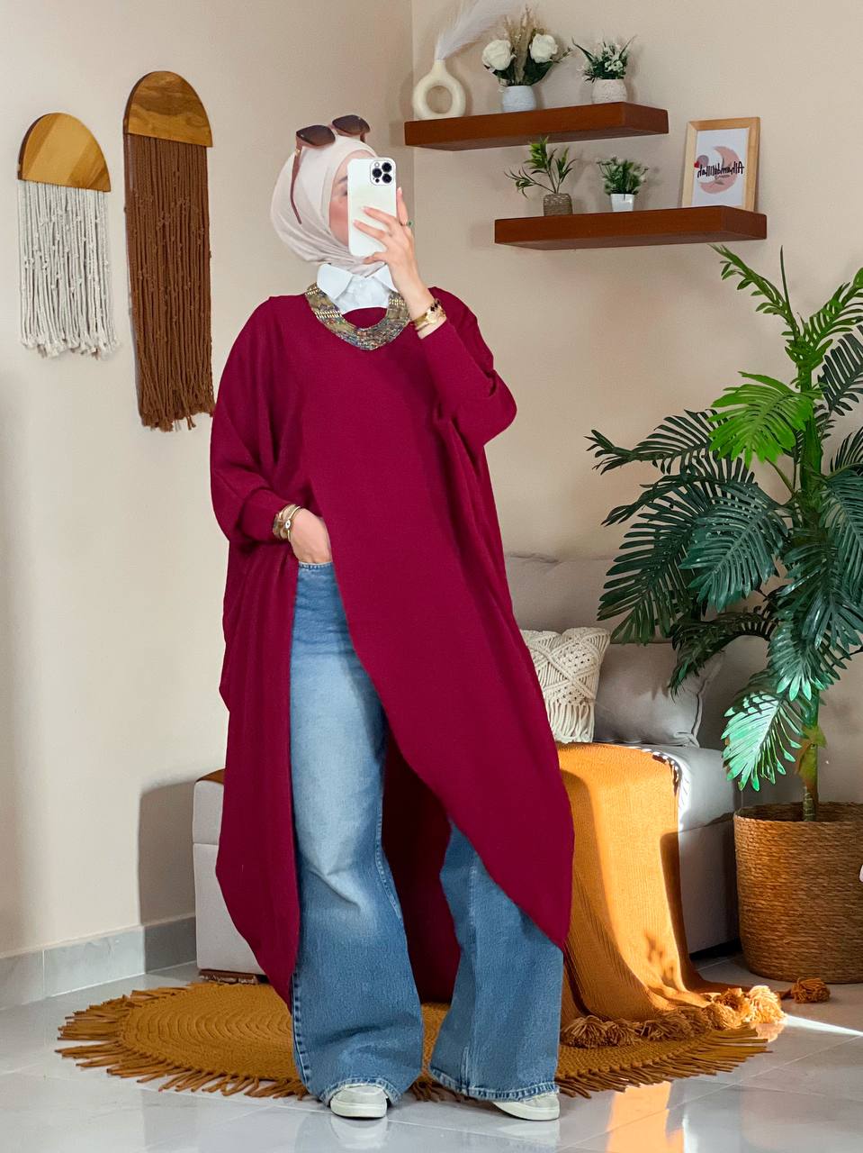 البونشو عملي جدًا، سهل ألبسه على أي حاجة ، وخامته مريحة في اللبس